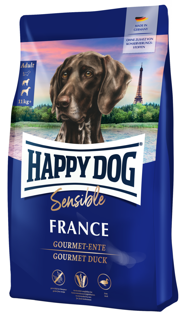 Корм для собак Happy Dog Sensible France, для взрослых собак, беззерновой корм с уткой 4 кг